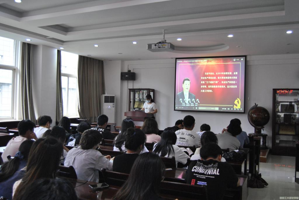 会议观看《生命重于泰山--学习习近平总书记关于安全生产重要论述》专题视频,带领支部全体党员和2018级学生干部学习习近平总书记关于安全生产重要论述,将安全生产重要论述精神走深走实,不断提高党员和学生干部的责任感和使命感;同时带领党员和学生认真观看全国安全宣教和应急科普平台“安全生产月”活动主题宣传片,看到了医生、消防员、实验员、建筑工人、科研人员以及无数普通工作为了保障人民的生命安全所付出的辛劳,感谢他们的默默奉献。最后,张瑞红老师通过日常警示案例,要求学生宿舍安全用电、实验室正确使用化学药品、交通安全、食品安全等,希望党员和学生干部在日常起到模范带着作用。