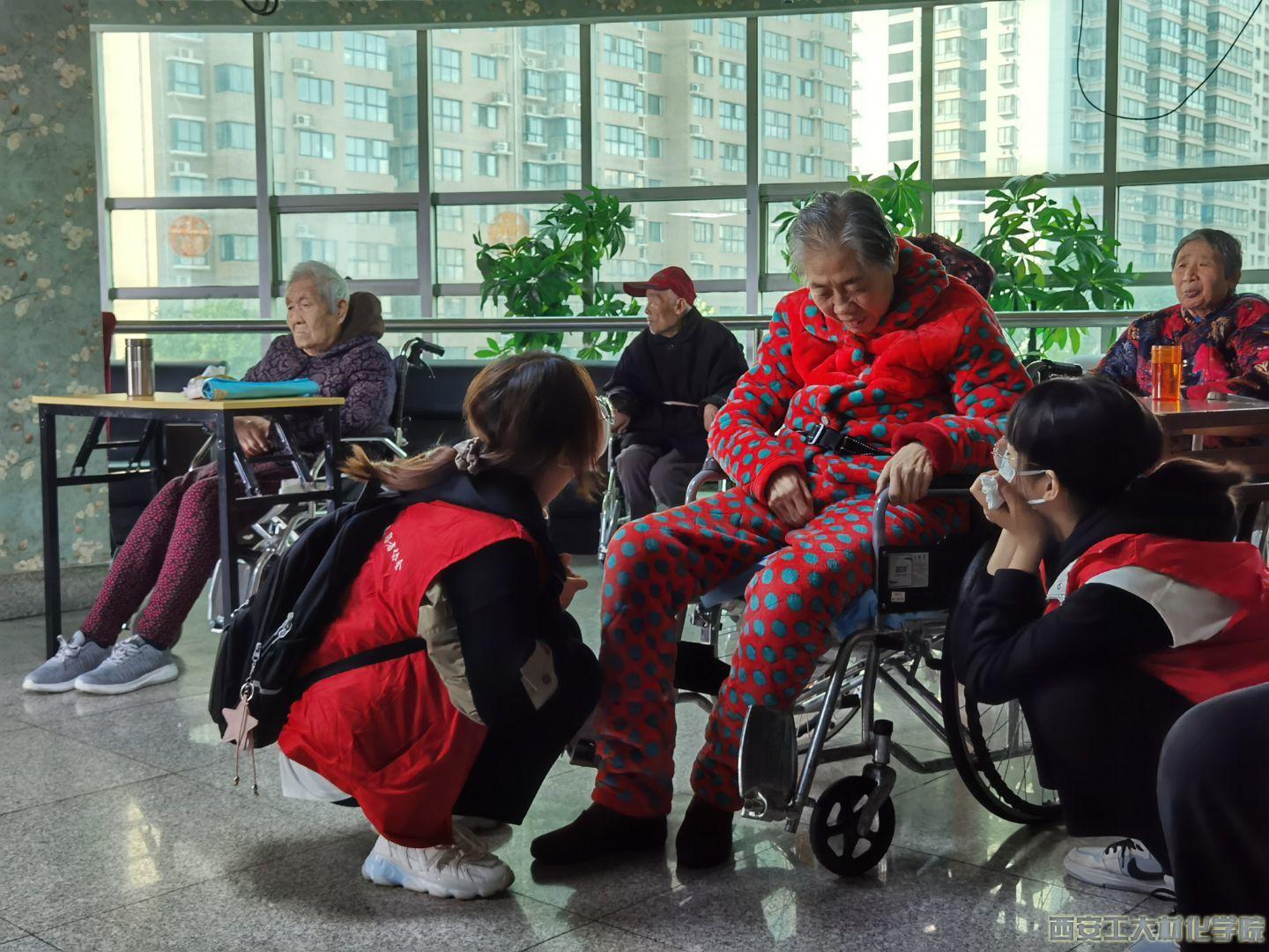 青年志愿者协会怀揣着志愿服务的热忱赴春天老年护理院进行义务志愿服务。学生会青年志愿者协会全体成员参加。