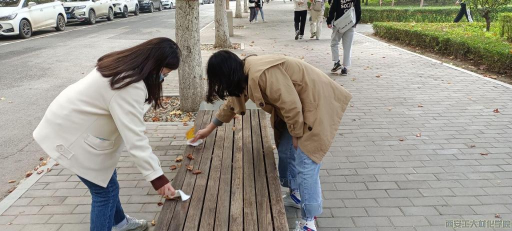 青年志愿者协会全体成员和2018、2019级贫困生在学校大餐厅旁的共享单车停靠处集合,并按照名单进行签到。接着工作人员向贫困生们发放志愿服,并讲述了此次活动的主要内容。随后,同学们自行组队前往学校的各个角落,分别对校园内长椅,指示牌和展板进行擦拭。参加活动的所有同学都满怀热情,为打造更美校园献出了自己的一份力量。最后,本次活动在所有同学的辛勤劳动下接近尾声,所有成员返回至集合地点,进行活动签退,并进行了合影留念。至此,此次义务劳动活动圆满结束。