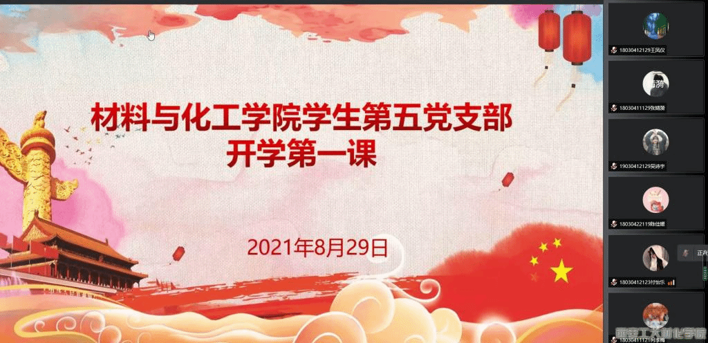 学生第五党支部于2021年8月29日以腾讯会议形式举行“开学第一课”,全体学生党员按时参会。
