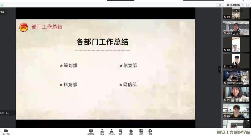 科学技术协会于2022年3月16日晚7:30通过线上会议召开了本学期第一次例会。本次会议由学生干部蔡毅主持召开,科协全体成员参加此次会议。