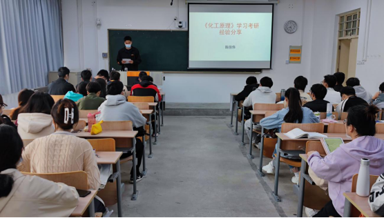 陈佳伟同学考研时选择跨考化工专业,将《化工原理》课程作为考试专业课,因此对该门课程学习有着丰富经验。他提出在学习时要注重逻辑分析,不能只追求记忆知识,在平时要紧抓课堂时间,高度重视课程学习,同时也要以独立的思维理解课程知识,遇到难以理解的问题是要及时寻求老师帮助。接着,陈佳伟便对自己的研究生跨考经历进行分享,讲解了跨考考研的注意事项:包括要清楚目标院校对该专业的要求,并以目标院校的录取要求进行考研备战。尤其着重指出,即使目标院校的专业知识要求与小黄书差距较大,但是作为专业根基的基础知识是相同的,打牢专业基础尤为关键。