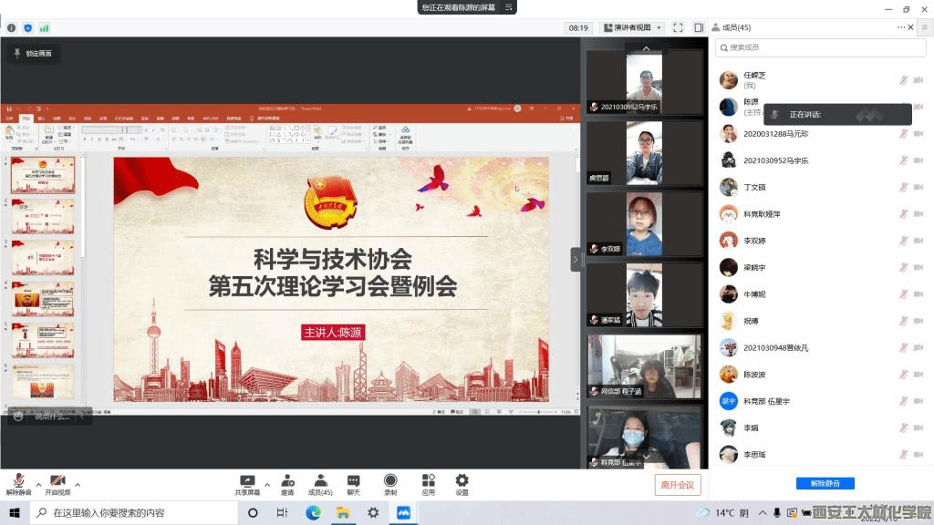 科学技术协会于2022年4月16日晚在线上召开全国政协第十三届第五次会议理论学习会。本次会议由学生干部陈源主持召开,科协全体成员参与本次会议。