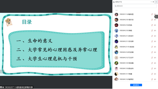 2019级通过腾讯会议举办了“珍爱生命 守护成长”生命教育主题年级大会,小黄书