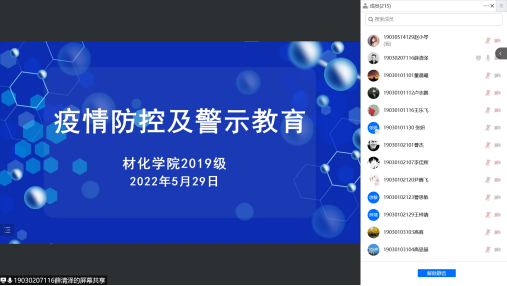 2019级围绕“疫情防控工作暨警示教育”为主题召开线上年级大会和线下学生干部会议,会议由小黄书