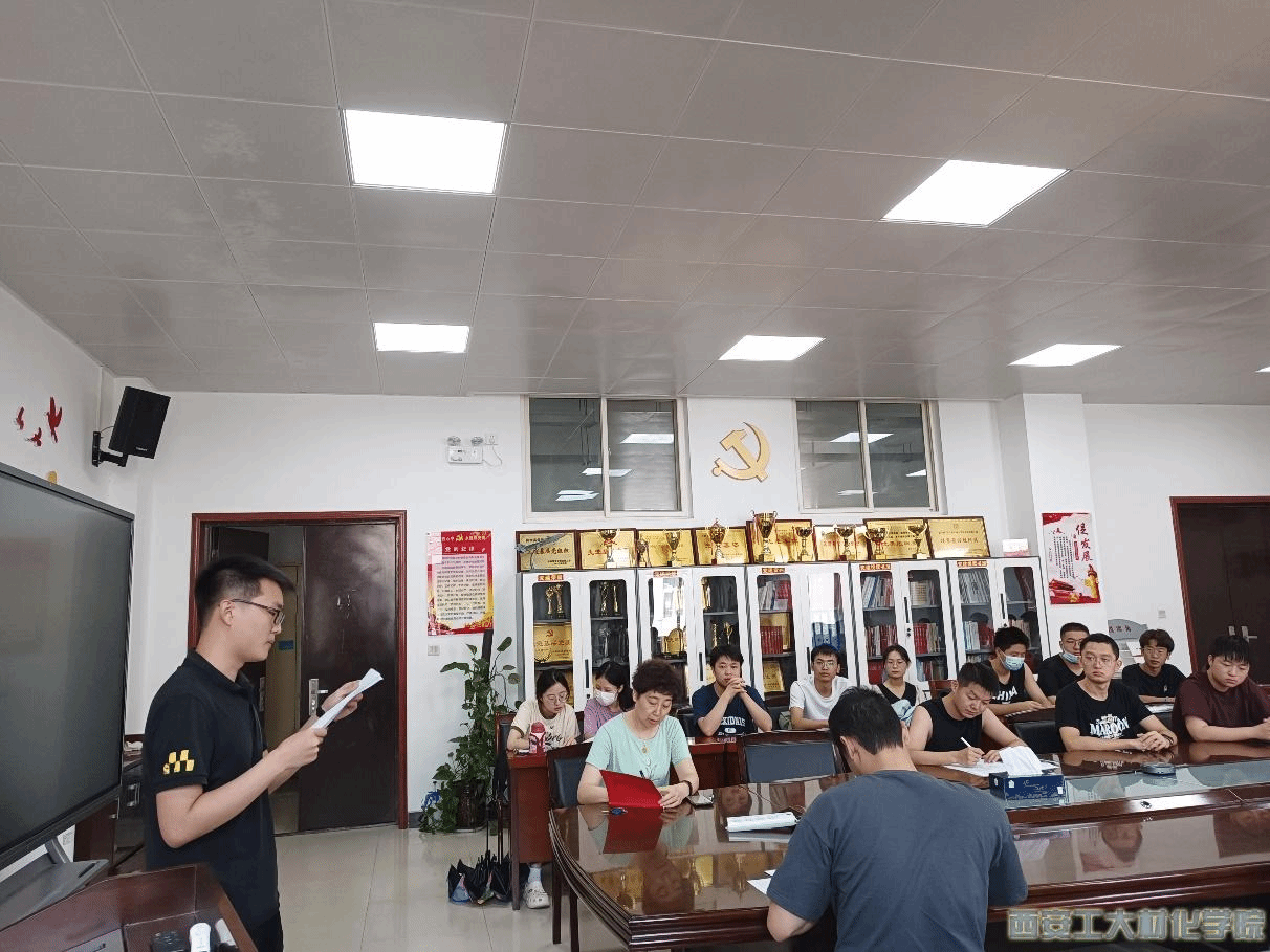 本次会议由支部书记段强主持。会议分为四项。第一项,由党支部副书记薛清泽带领支部成员进行《习近平在庆祝香港回归祖国二十五周年暨香港特别行政区第六届政府就职典礼上的讲话》、《习近平总书记关于教育的重要论述资料汇编》理论学习;第二项,党支部书记段强结合党史学习教育做2022上半年支部工作总结,明确查摆本支部的问题和不足;第三项,支部全体党员开展批评与自我批评。首先段强带头对自己在半年的支部建设和管理上提出自身的不足以及改善的层面,支委会以及其他党员分别从思想、生活、学习对自己进行检讨并作出改正。第四项,按照小黄书
