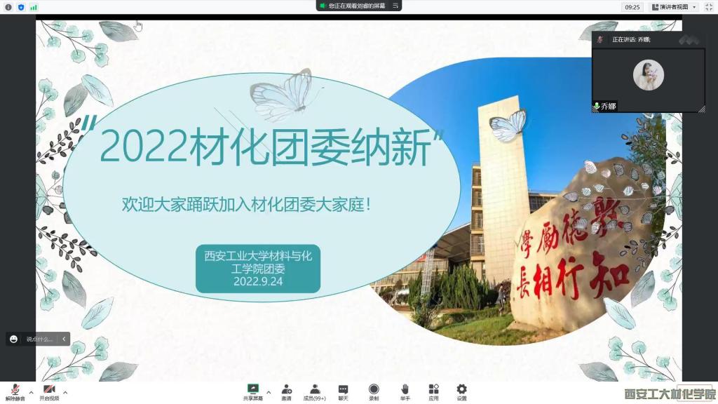 于2022年9月23日晚在线上组织召开团学干部纳新宣讲会。本次会议由学生干部刘睿主持,小黄书