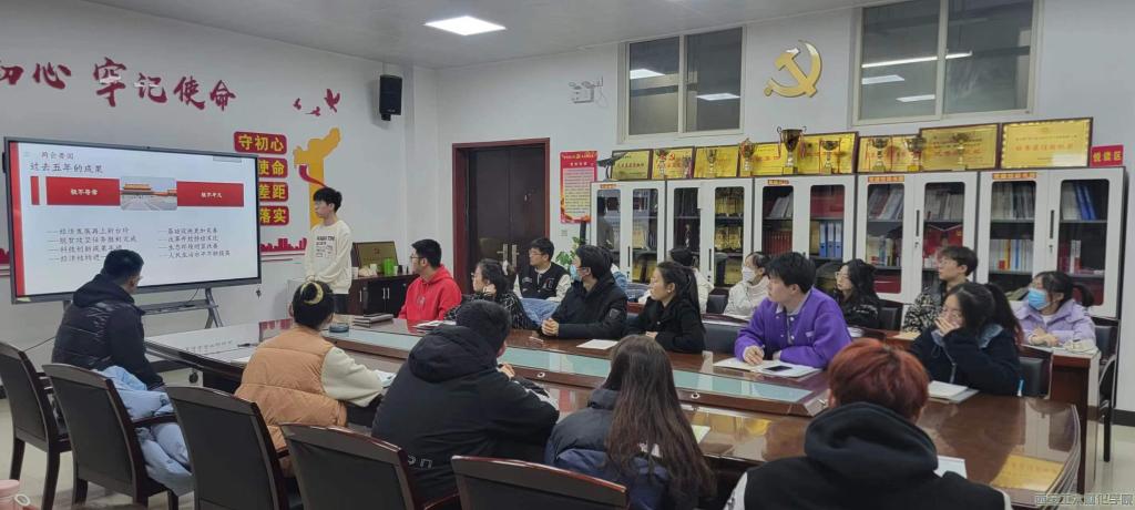 会议伊始,学生干部叶泽红围绕两会要闻讲解政策要点,将青年发展与会议热点内容紧密结合集中领学。会议中,叶泽红将报告中“五个针对”、“八项重点”以及五年成果这三方面重点带着大家学习,并针对热点问题进行了交流讨论。学生干部张桐谈论到:作为新时代青年大学生要深感国家的快速发展以及取得的辉煌成就,更要具备深刻的思想认识和强烈的社会责任感,为我国建设成社会主义现代化强国贡献自己的青春力量。学生干部陈子潇谈论到:作为学生干部,面对国家的繁荣昌盛和奋斗目标,青年人当以自信自强的面貌迎接机遇和挑战,不断自我锻造,提高工作能力,踔厉奋发笃行不怠,凝聚力量共同谱写新时代赞歌。学生干部王雨禅表示要发扬艰苦奋斗、勇于创新、甘于奉献、精益求精的精神,力争在工作上交上满意的答卷。至此,本次会议圆满结束。