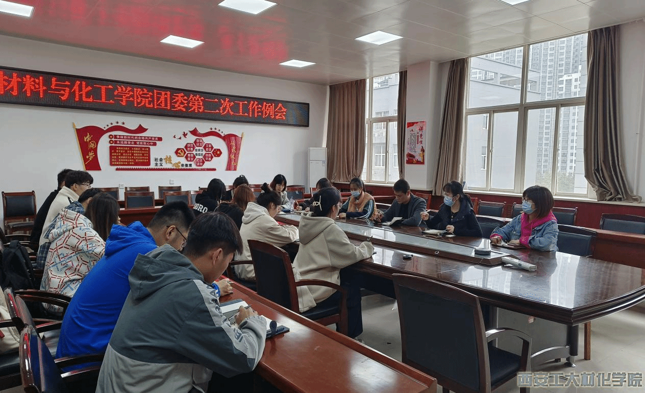 团委于3月23日中午12时在工3-410会议室召开2023年第二次工作例会。团委书记乔娜,团委副书记段强和徐慧子携团学组织学生干部共16人参加会议,会议由小黄书