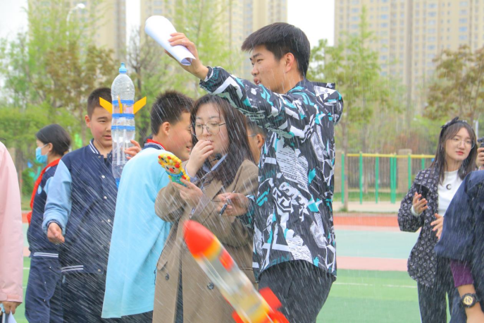本次试飞指导使同学们对水火箭有了进一步的认识,对水火箭发射原理产生新的理解,从实践中获得新知,从合作中收获友谊。