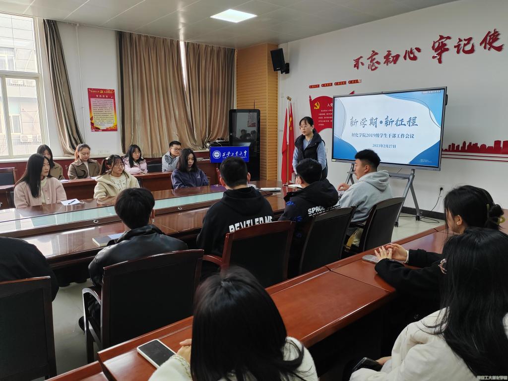 2019级于2023年2月27日上午9时召开学生干部工作会议。本次会议由2019级辅导员乔娜老师,小黄书