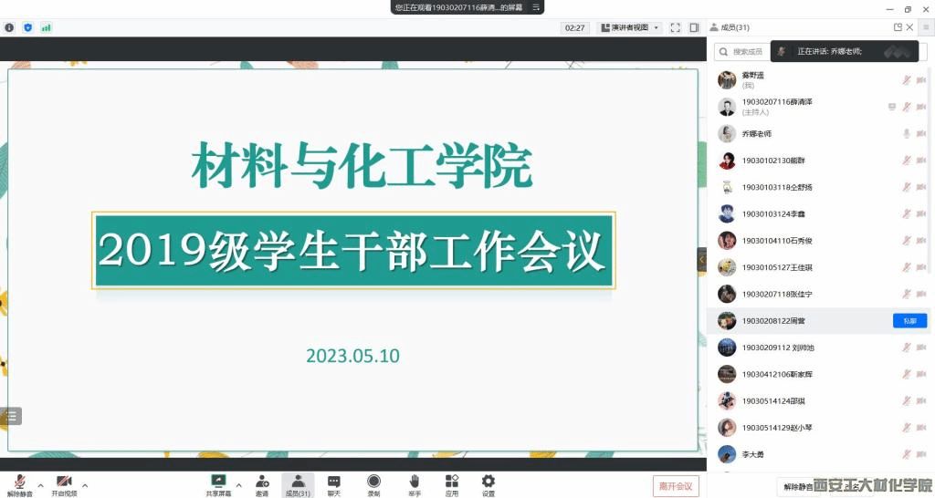 2019级于腾讯会议召开学生干部会议,会议由2019级辅导员乔娜主持召开,2019级全体班长、团支书参加会议。