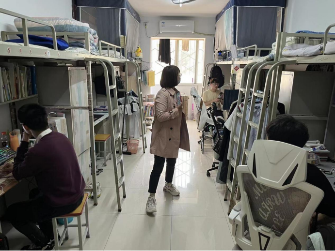 首先,刘强珺老师对各寝室的卫生情况逐个检查,针对安全卫生等问题进行排查,并对寝室的床铺、地面、门窗等各个角落进行认真清扫。通过检查,发现有些寝室的卫生状况较差,存在一些物品摆放不整齐、地面不干净等问题。针对这些问题,老师及时提出批评意见,并要求寝室同学认真整改。宿舍卫生优秀的宿舍也在全年级做出了表扬。