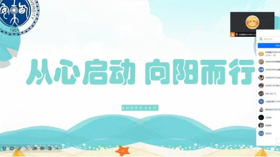 2020级于12月20日召开以“从心启动,向阳而行”为主题的心理主题班会,会议由2020级辅导员徐慧子主持。