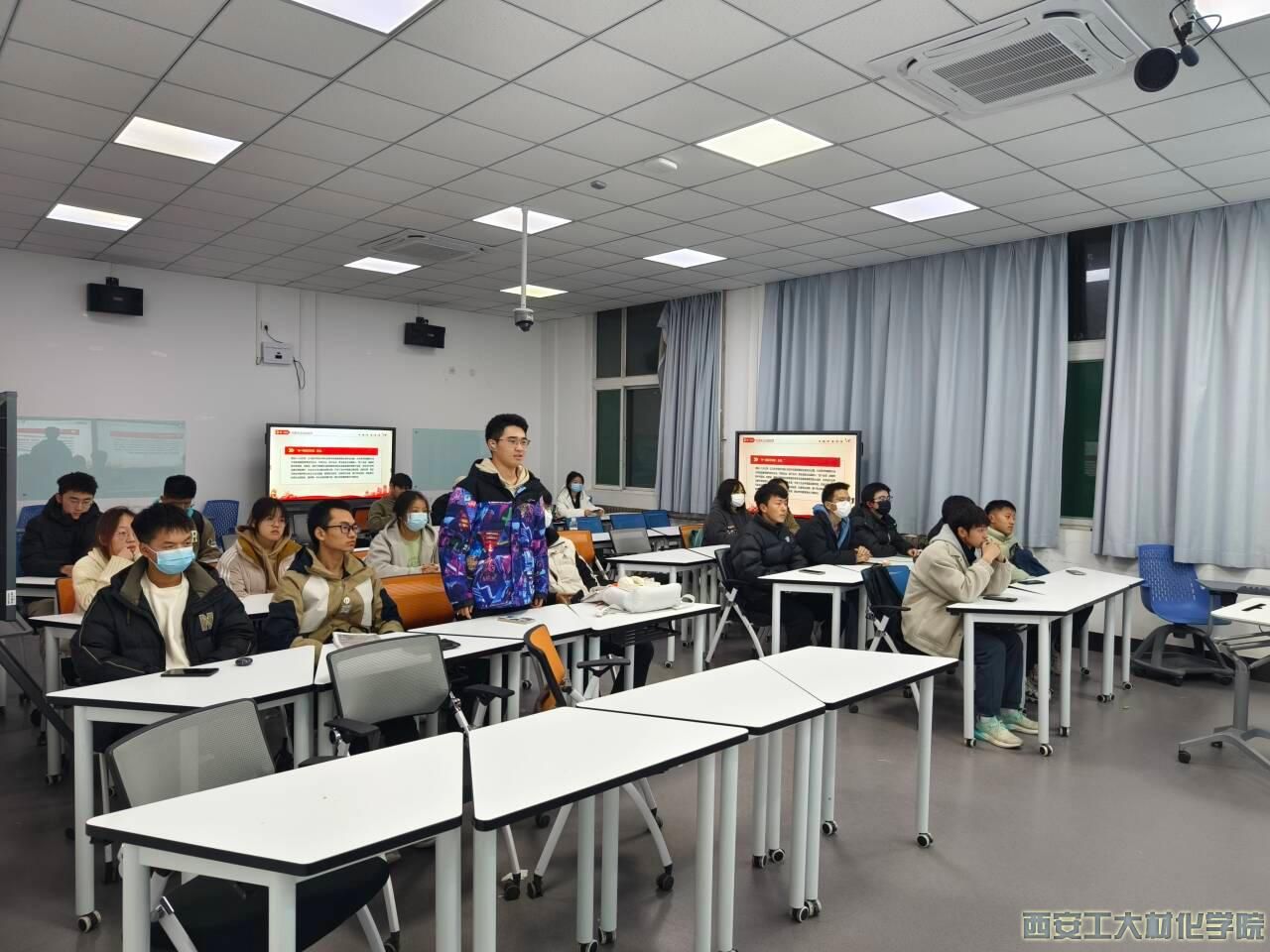 会上,学生干部柯硕带领学生一同学习国家宪法日的由来和意义,并带领与会同学共同学习了新时代全面依法治国取得的历史性成就,与会成员对如何提升当代大学生群体的法治素养展开了热烈的讨论。