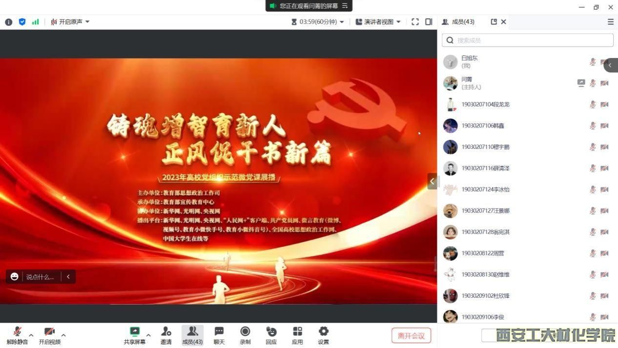 学生第三党支部线上开展“铸魂增智育新人,正风促干书新篇”理论学习会。支部书记段强及全体党员参加会议。