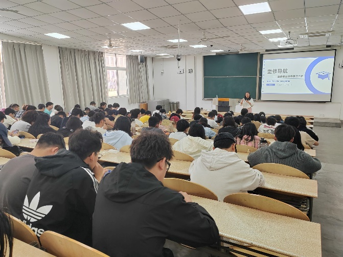 2022级在教1-101召开课程重修指导会。本次会议由辅导员张瑞红主持,150余名学生参加。