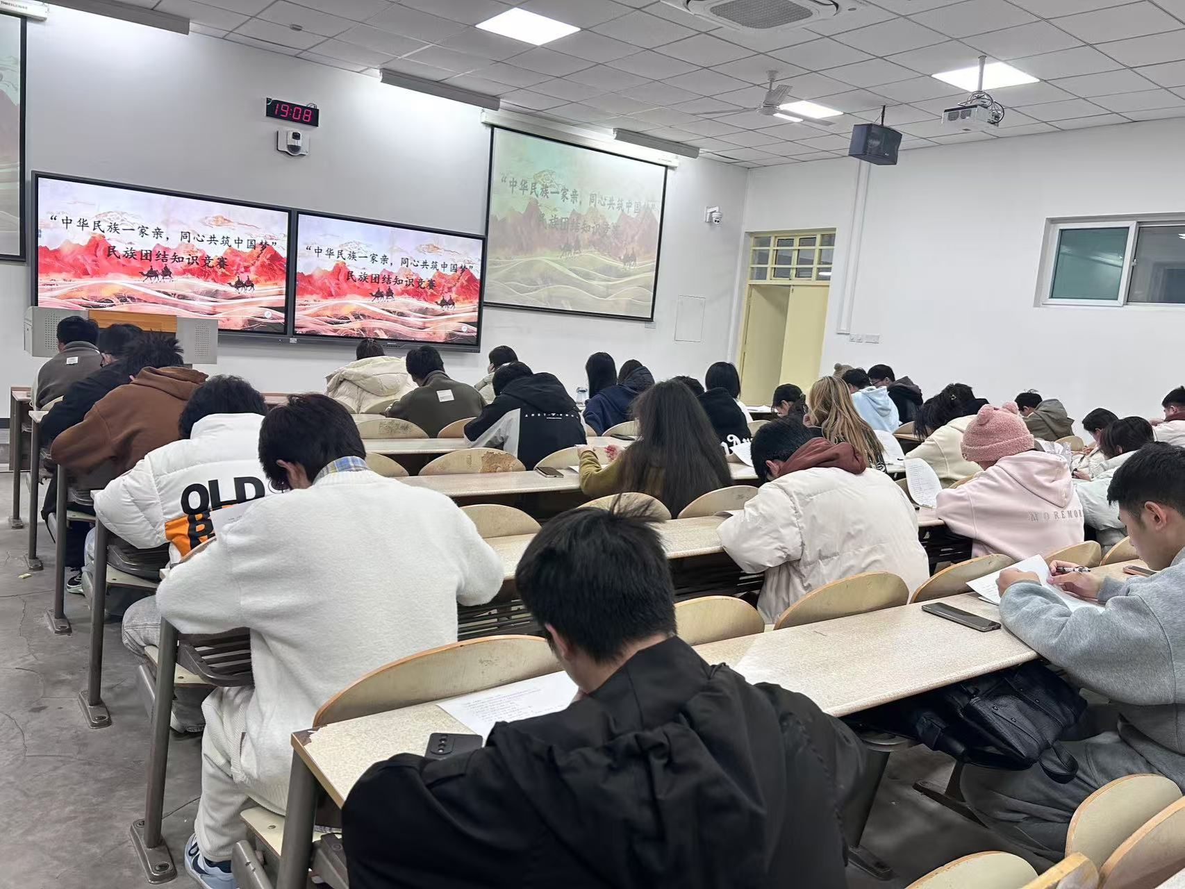 在教2-109举办了以“中华民族一家亲,同心共筑中国梦”为主题的民族团结知识竞赛活动,活动共计50名同学参加。