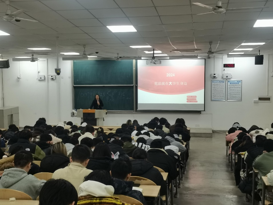 在教1-101召开2022级学习宪法主题教育会。会议由辅导员张瑞红主持,2022级200余名学生参加。