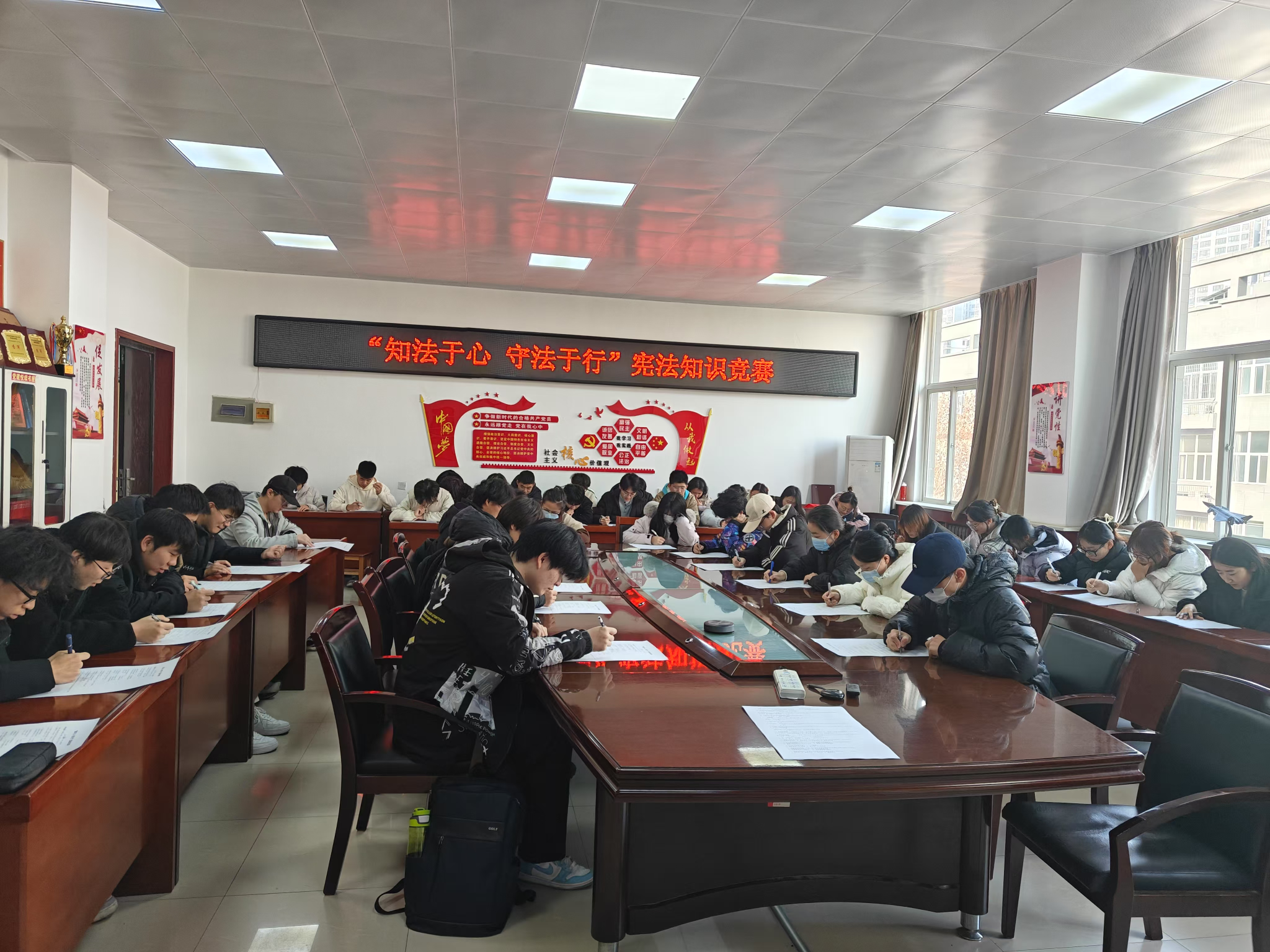 此次竞赛吸引了众多学生积极参与,在本次宪法知识竞赛中,同学们积极参与,展现了对法治理念的深刻认同和对宪法知识的热切追求。竞赛题目涵盖了宪法的历史、内容、原则以及在实际生活中的应用等多个方面。在答题过程中,同学们认真思考作答,冷静分析题意。通过答题结果进一步分析,深化对宪法的理解和认识,同时也为营造尊崇宪法、学习宪法、遵守宪法、维护宪法、运用宪法的良好氛围贡献了力量。