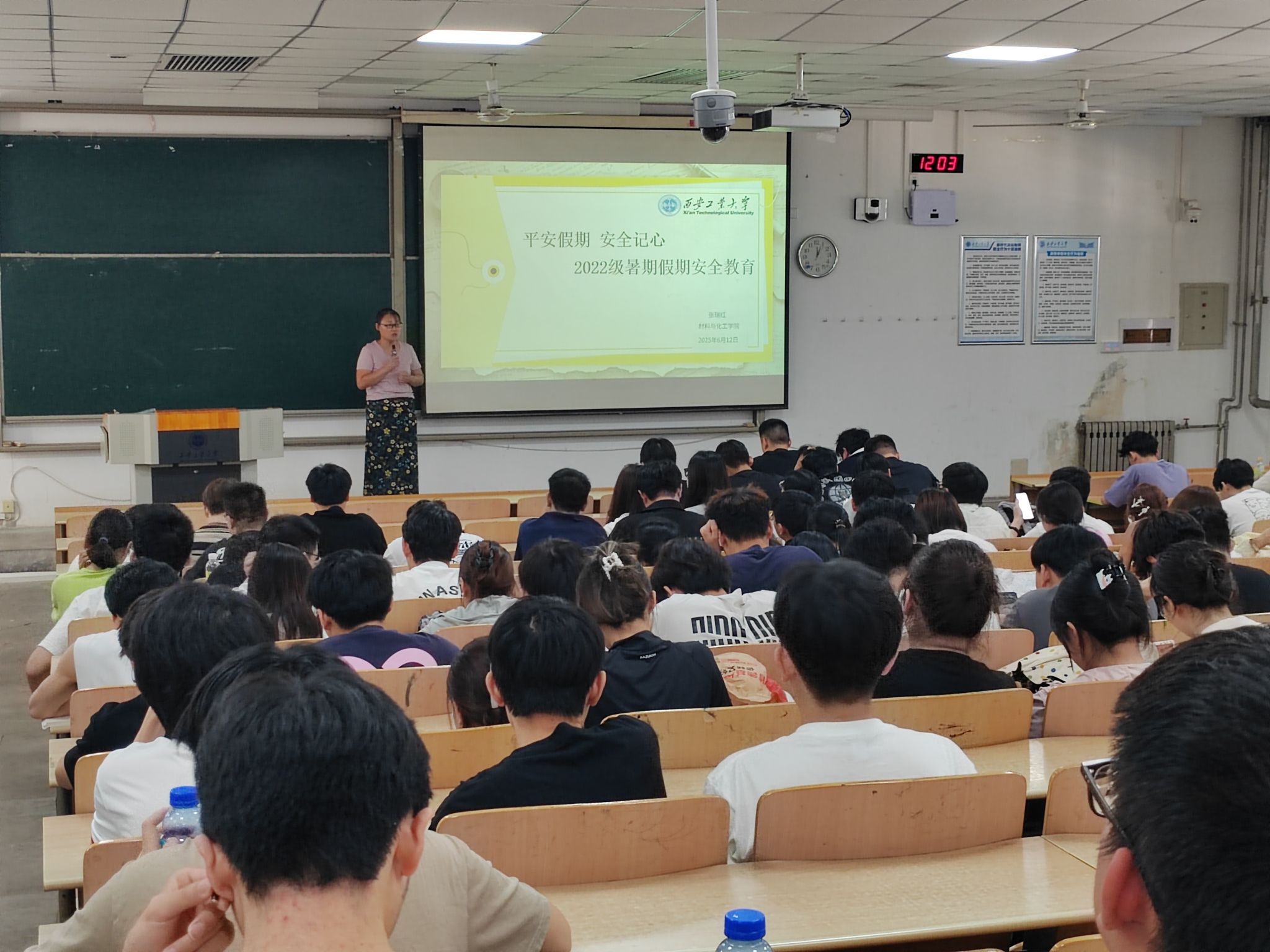 2022级于教1-105教室召开暑期安全教育会。本次会议由辅导员张瑞红主持,年级320余名学生参会。活动围绕防溺水、交通安全、居家安全、防诈骗等重点领域展开全面讲解,旨在为学生暑期安全保驾护航。
