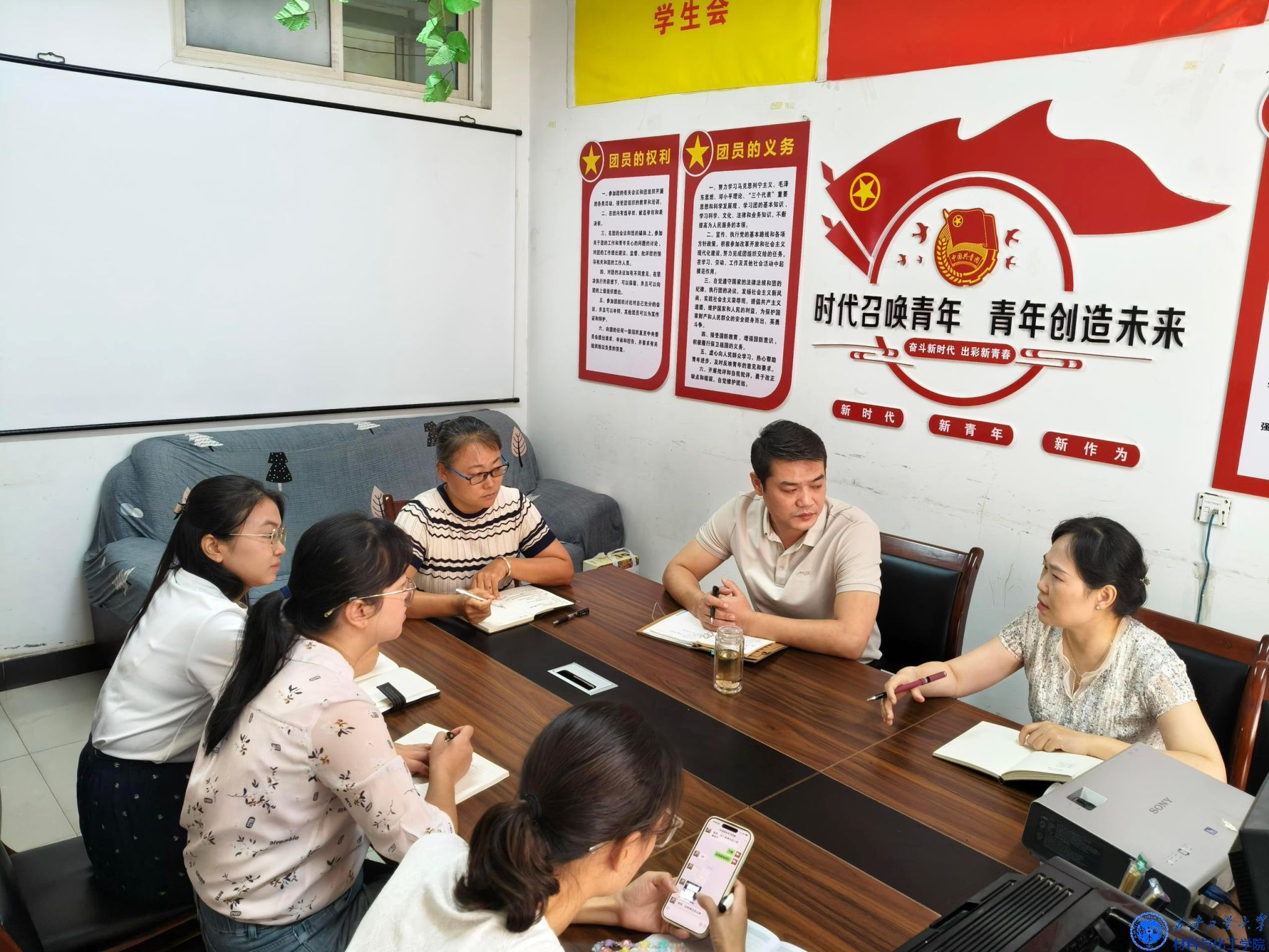 于工3-413会议室召开新学期学生工作例会。小黄书