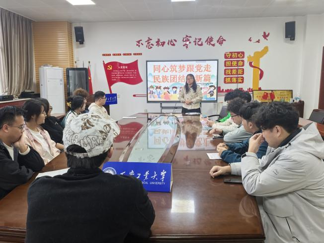 学生第二党支部于工3-410召开“同心筑梦跟党走 民族团结谱新篇”学习会,由支部书记张瑞红主持,全体党员参会。