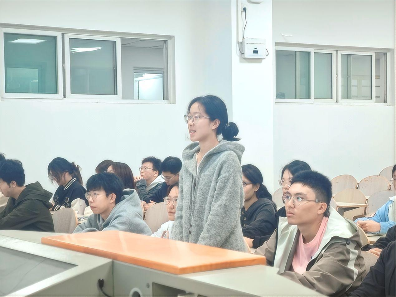 在互动交流环节,大家结合自身国庆见闻与生活体验分享感悟,围绕“新时代青年如何用行动践行爱国精神”展开热烈讨论。有同学谈到参与社区“红色故事宣讲”的经历,认为传播红色文化是爱国;也有同学结合专业提及实验室里的钻研,提出“把材料学知识学扎实,未来攻克技术难题也是爱国”。大家一致认为,爱国精神体现在具体行动中,新时代青年应立足专业学习与社会实践,以实干诠释爱国担当。