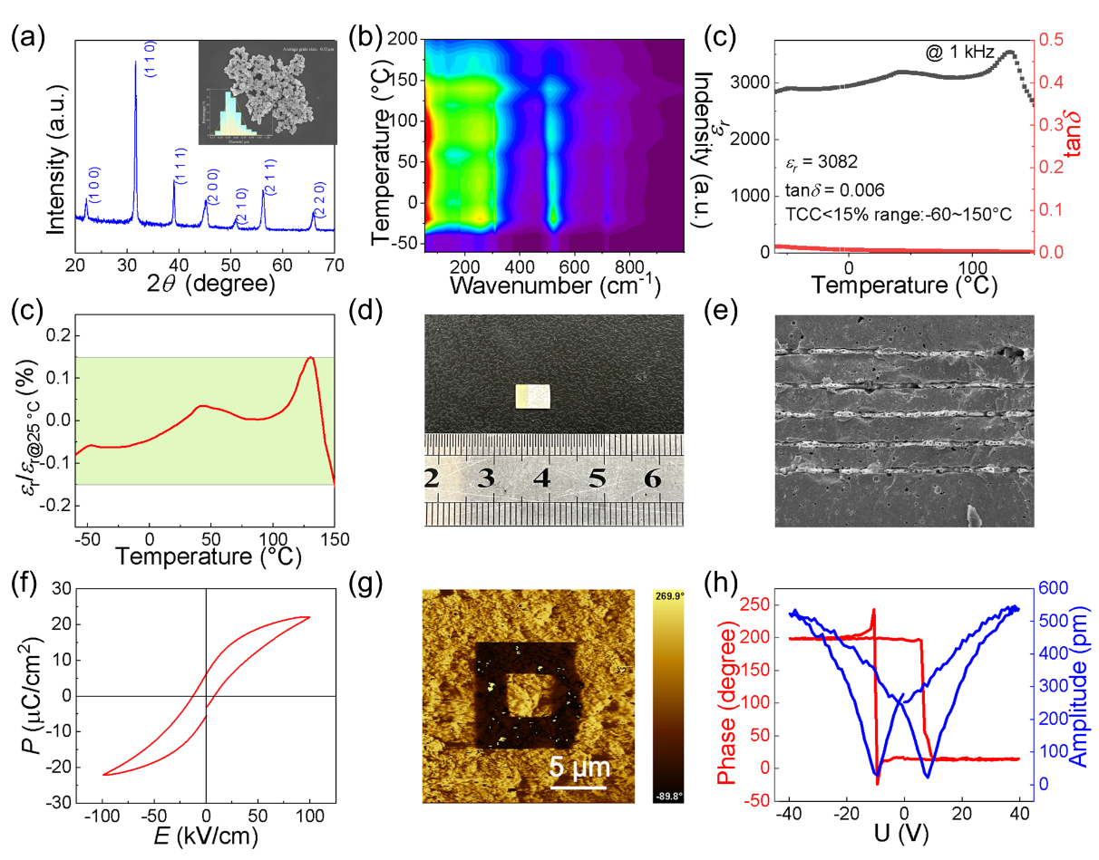 3. 成功研发了基于X8R(er, 3050;tand, 0.009)、X9R型(er,1300;tand, 0.014)MLCC器件的高介宽温域电介质陶瓷粉体制备技术,相关成果可应用于新能源汽车、航空电子、石油钻井等领域。