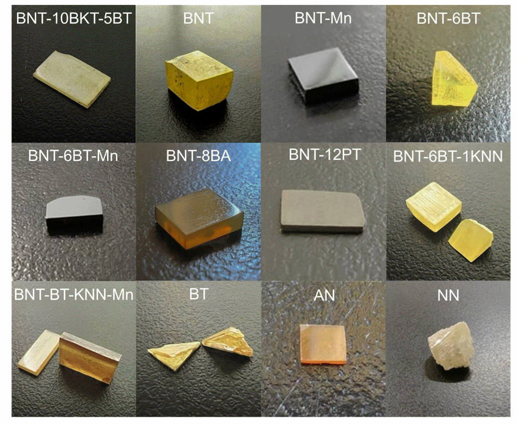 1. 突破了助熔剂法生长无铅钙钛矿单晶的核心技术,成功生长了高质量的BNT、BNT-BT-KNN、BNT-BT-NN和BNT-BKT-BT单晶,获得的电学性能参数处于国际先进水平。