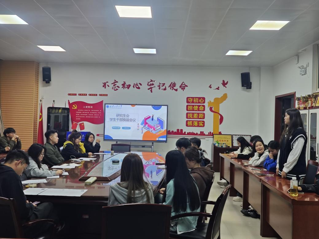 研究生会于10月28日在工三410会议室顺利举办换届暨纳新大会。会议由辅导员张启妍主持,第二届主席团成员及各部门负责人出席。