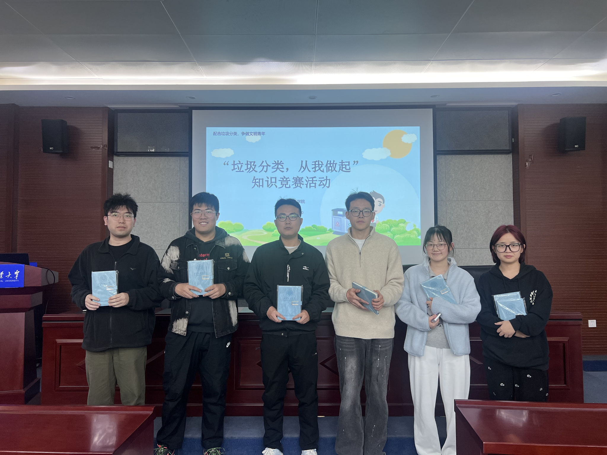 此次竞赛以线上答题的形式展开,题目内容涵盖了常见垃圾的分类方法、垃圾分类的标准以及不同垃圾处理方式对环境的影响等多个方面。经过激烈角逐,魏梦瑶,晁鹏涛等6名同学脱颖而出,在本次竞赛中获奖。在颁奖环节,小黄书