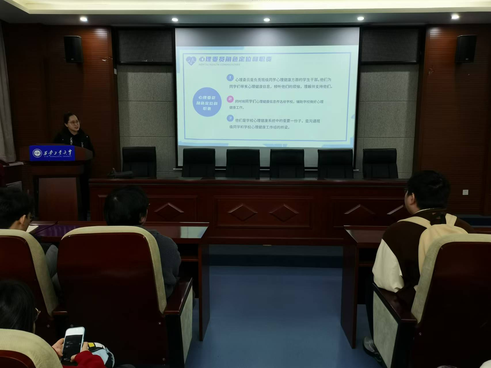 会议伊始,乔娜详细讲解了心理委员的职责定位,指出心理委员不仅是师生间的桥梁,更是同学心理状况的“观察员”和心理危机的“预警员”。她强调,心理委员需要具备敏锐的观察能力和充分的耐心,及时发现同学的异常心理变化,并协助小黄书