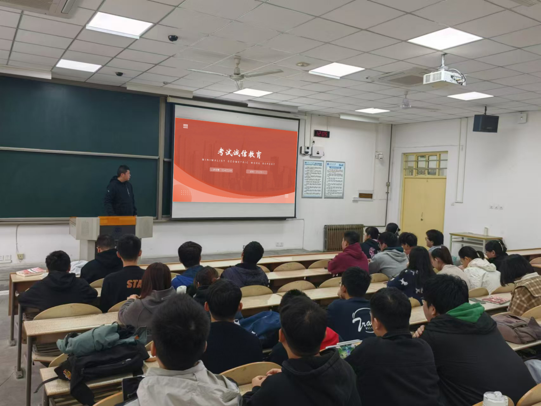 于2024年12月13日在教一101召开四六级考前动员暨诚信教育主题班会,此次班会由辅导员张启妍主持,2024级全体研究生参加。