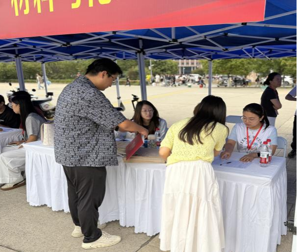 在经纬广场设立迎新服务点,由辅导员与研究生志愿者组成的迎新工作组全程驻守。工作期间,迎新人员严格按照规定流程,为新生提供全方位服务:从查验新生录取通知书、学位证、毕业证及身份证件,到发放校园卡等报到物资;同时,针对新生及家长关心的报到进度、课程安排、宿舍分配、校园设施使用等问题,进行耐心解答与清晰指引,并协助新生完成宿舍入住手续。整个迎新过程组织有序、高效顺畅,切实解决了新生报到期间的实际需求。