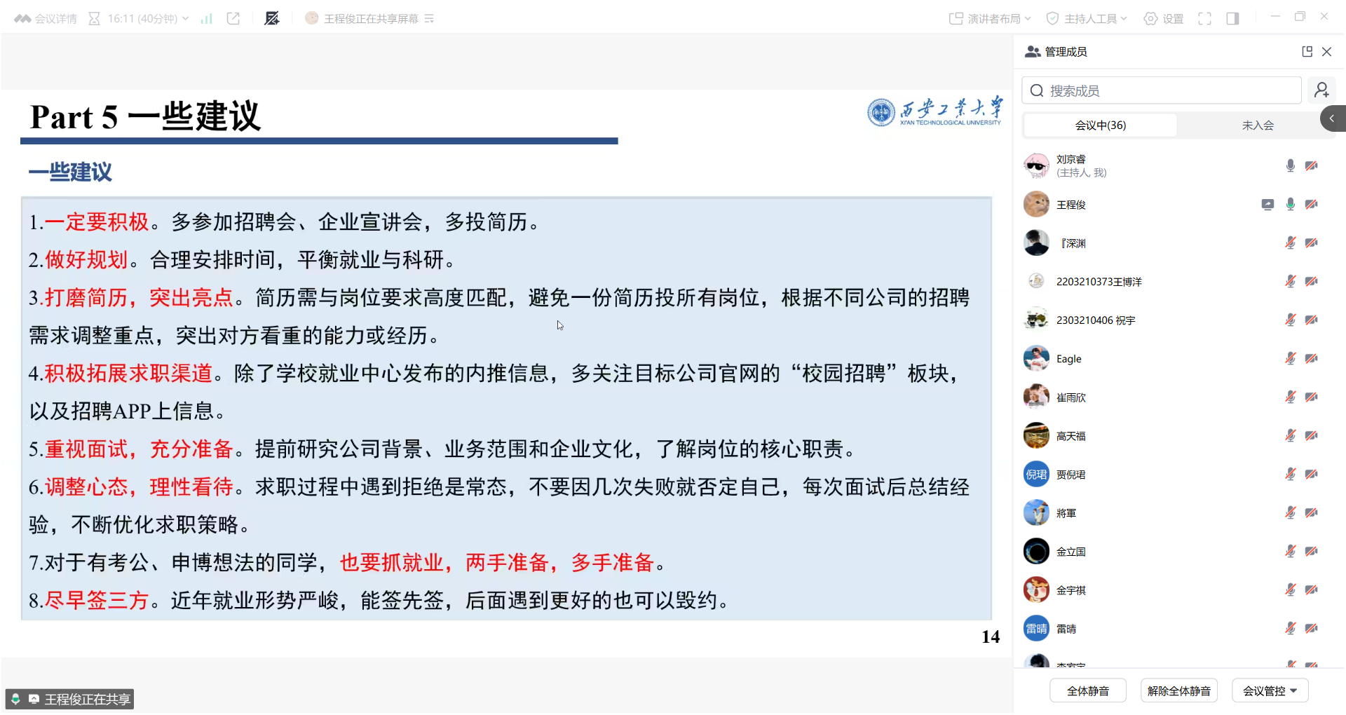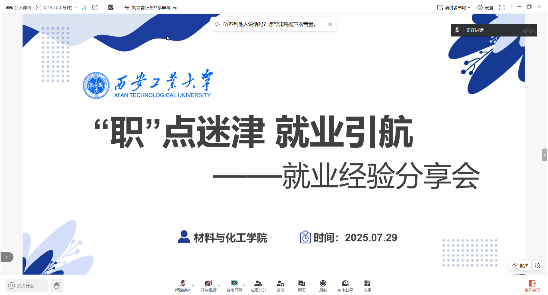 举办“‘职’点迷津”研究生就业经验线上分享会,邀请了2025届优秀毕业生王程俊和王博洋分享求职经验。小黄书