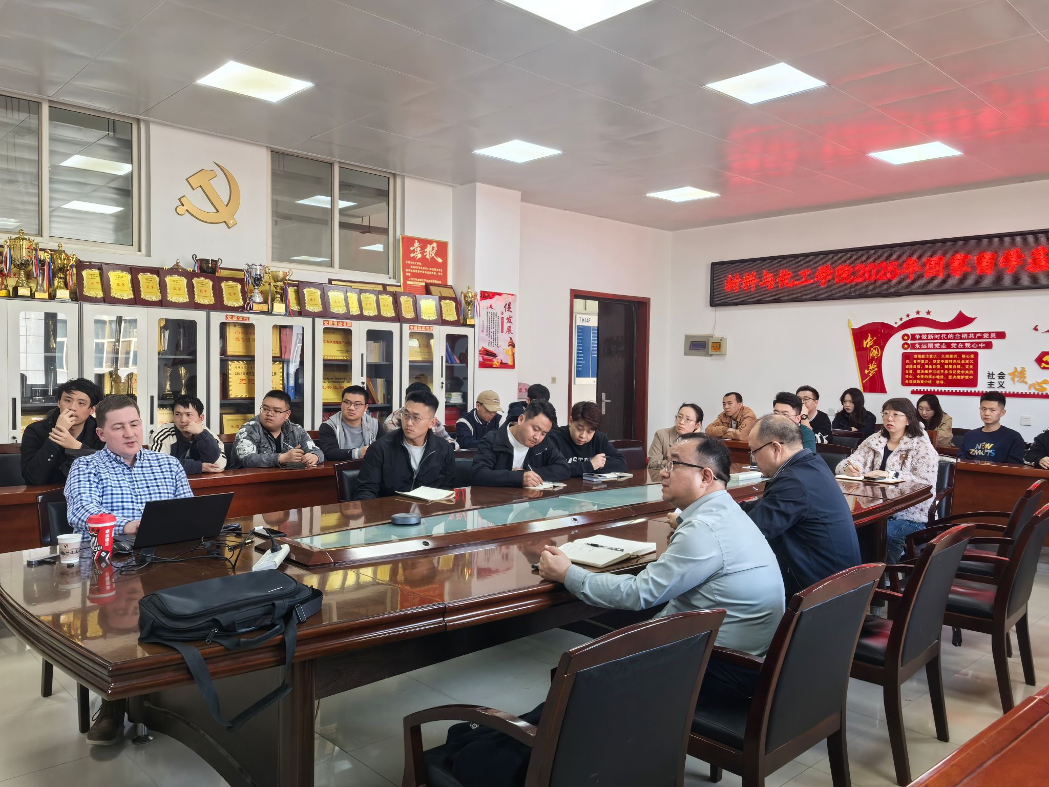 会上,杨忠院长首先介绍了国家留学基金委公派留学项目情况,鼓励同学们积极拓展国际科研视野,学习先进理论和技术方法助力材料与化工领域创新发展。